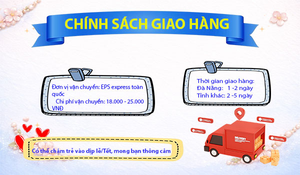 Phí vận chuyển giao toàn quốc động từ 18.000 – 25.000 VNĐ tùy khu vực giao hàng.